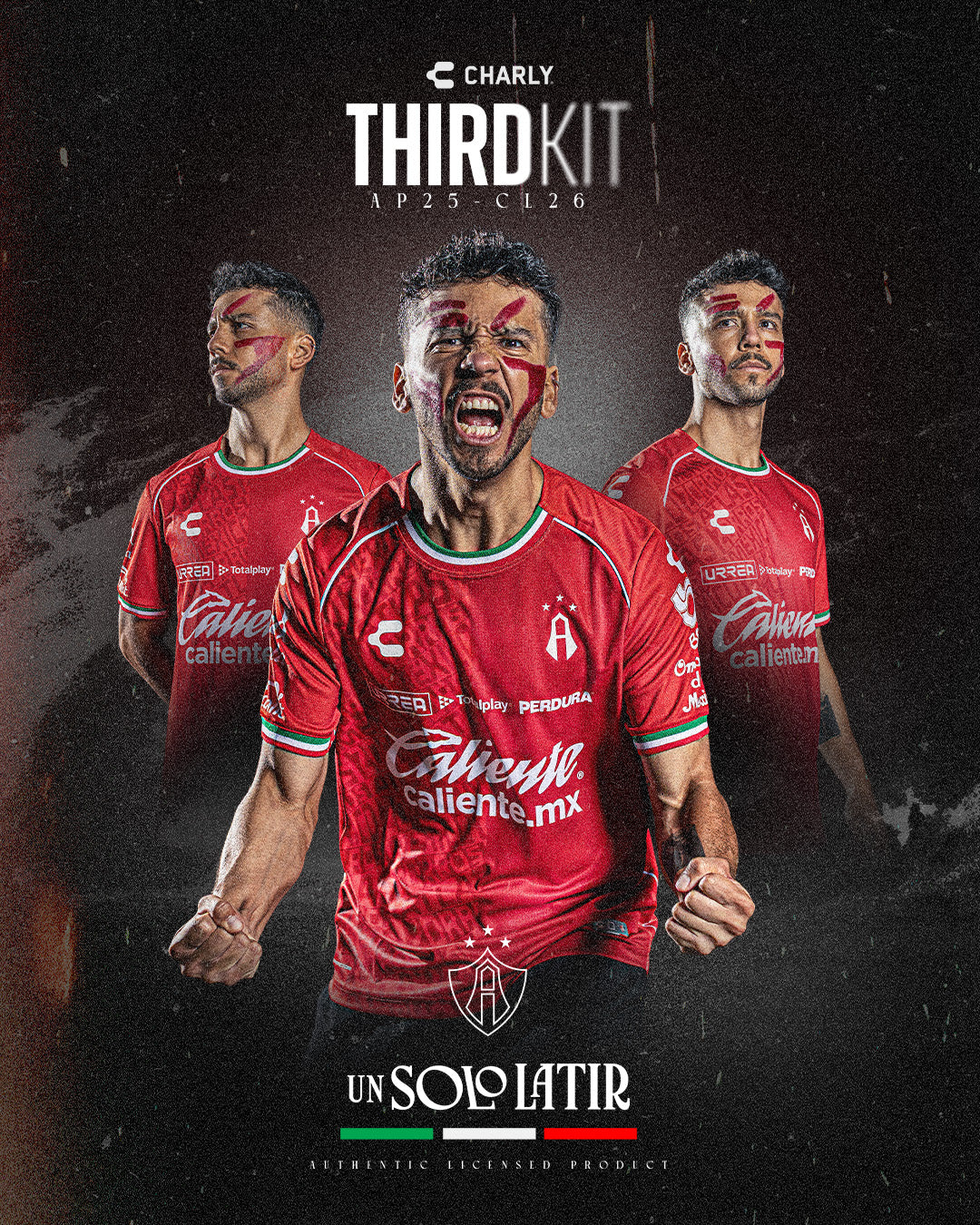 Introducing the Atlas Third Jersey 25-26 for Men, its two-tone red design with graphic pennants alludes to the Rojinegros fans cheering from the stands, united in a passion that transcends the club and represents an entire nation that celebrates the intensity and enthusiasm that only soccer makes us feel, a garment with Mexican touches created to accompany you during the closing of the season and bring you closer and closer to live the World Cup spirit. The Third Kit 25-26 collection evokes a patriotic and soccer feeling, designed for those who live with intensity every play.Pride, tradition and courage: this is how soccer is lived when you wear the Rojinegro colors!