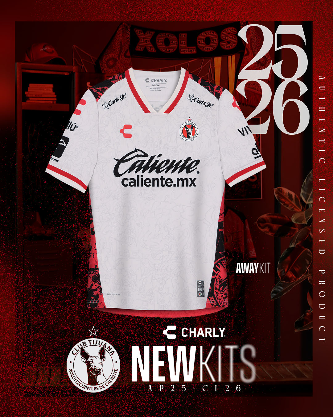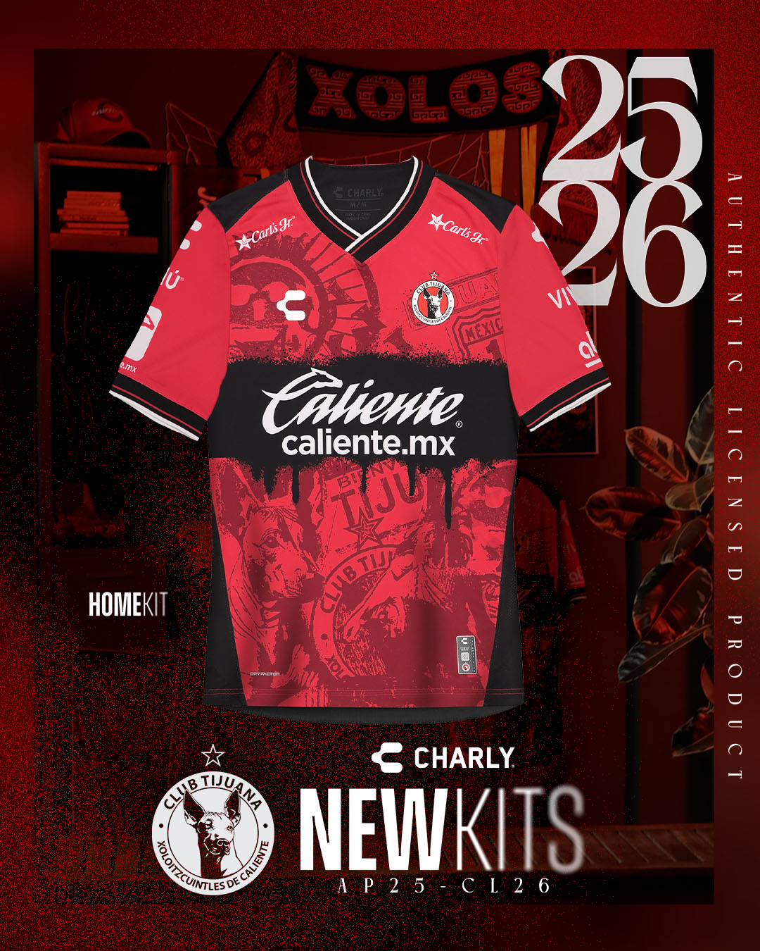 Carry the power and spirit of Tijuana in every step with the Xolos Home Jersey for Men, a garment that fuses soccer, culture and urban roots in a design full of identity. With a mostly red design, this model incorporates a central black stripe with a graffiti-like urban style that pays homage to the rebellious and artistic character of the city. The graphic features iconic symbols such as the Xoloitzcuintle, the Mictlán God, the number 333 and the Cuauhtémoc traffic circle, creating a visual narrative that connects with the essence of Tijuana.
